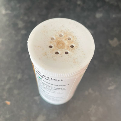 The number of holes on this pepper jar is just perfect. There are just seven tiny holes on the top of this pepper jar which prevent the pepper to be poured more than the amount that you want. The day that I bought this pepper jar from the grocery store I also bought a salt jar along side it. But, the salt jar doesn’t have any tiny holes on top of it instead it just has a big hole from which there is always a great amount of salt poured. So, I always need to pour a little bit of salt on my palm and pour it on my food using my fingers which is a frustrating work to do, and it causes a great amount of salt to be wasted. That made me think of how well designed this pepper jar is compared to that salt jar. There is not even a single grain of pepper wasted whenever I use this jar. Also, it is made of plastic so if I drop the jar on the floor there is not going to break like if it was made of glass. Last but not least, it is reusable so you can fill it whenever you run out of pepper.